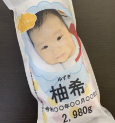 赤ちゃんの写真はもちろん、生年月日・名前・体重もお米袋にプリントされますので身内の方や親しい方へ贈るギフトとして人気急上昇中の注目ギフトです♪(全部で4種類)